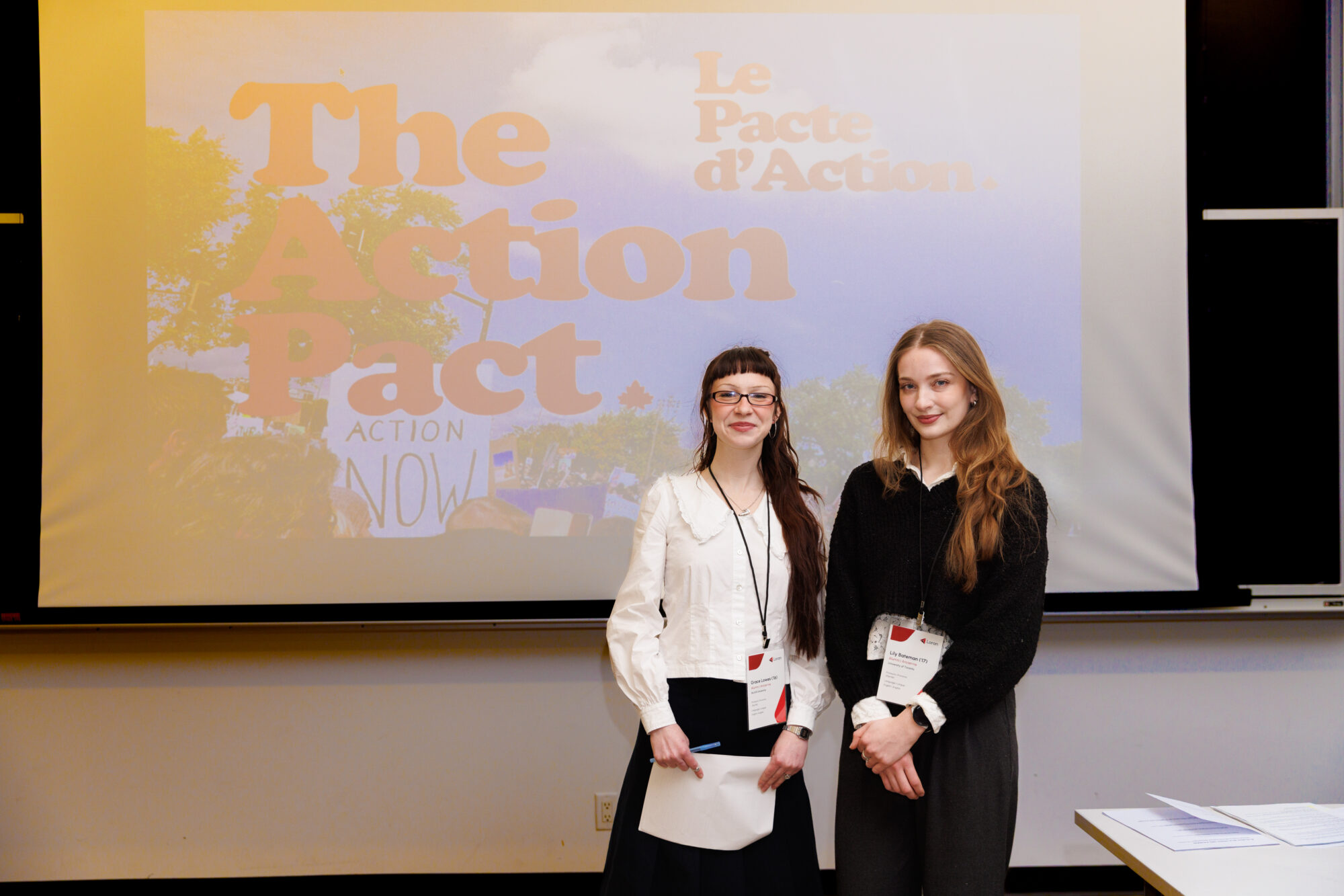 Cette année, elles ont présenté Action Pact lors de la fin de semaine des sélections nationales de Loran, où elles ont animé un atelier à l’intention de finalistes et de Boursier·ère·s Loran de tout le pays. L’atelier portait sur le fonctionnement des institutions civiques, l’importance de la participation et les domaines où les jeunes peuvent exercer une influence.